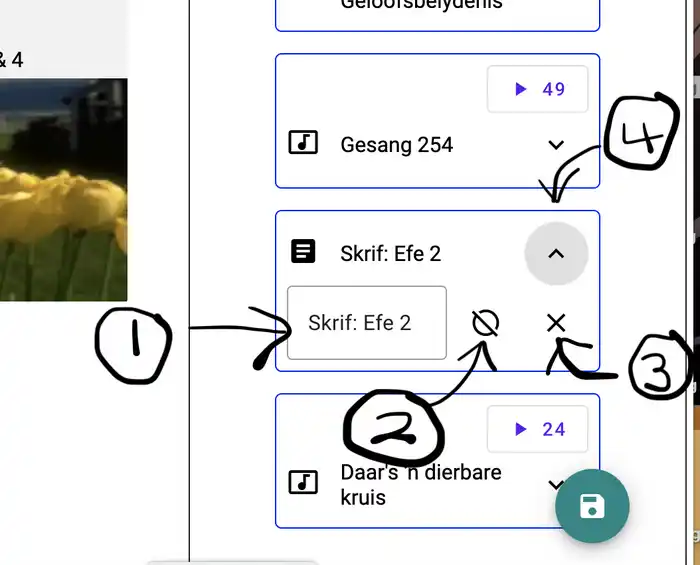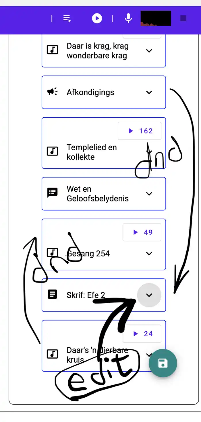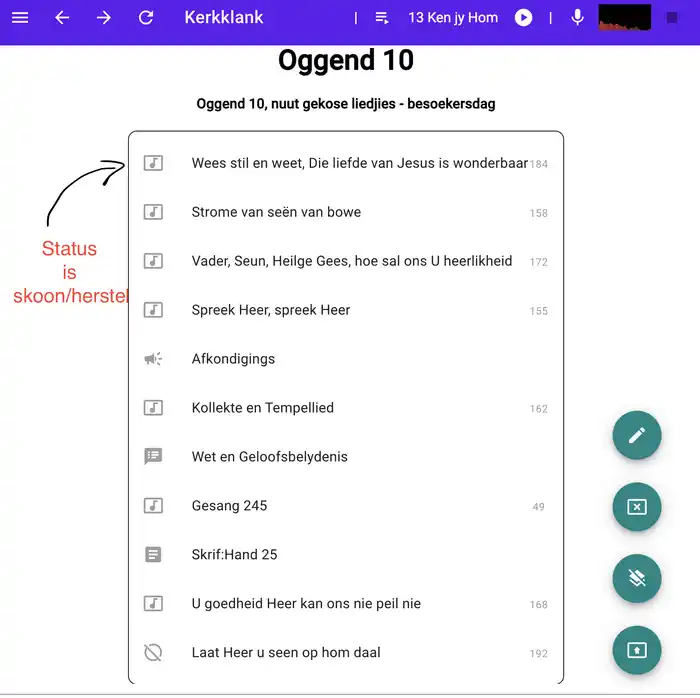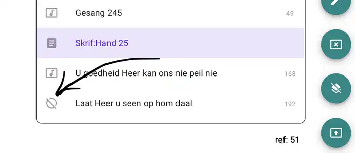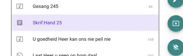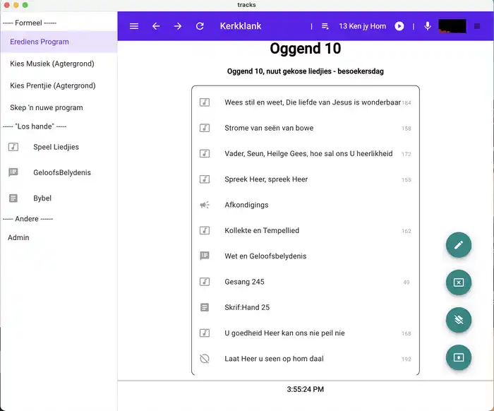 Aksie 4 gee die operatuur die geleentheid om vinnig die program/agenda te verander. Soos byvoorbeeld die skriflesing.