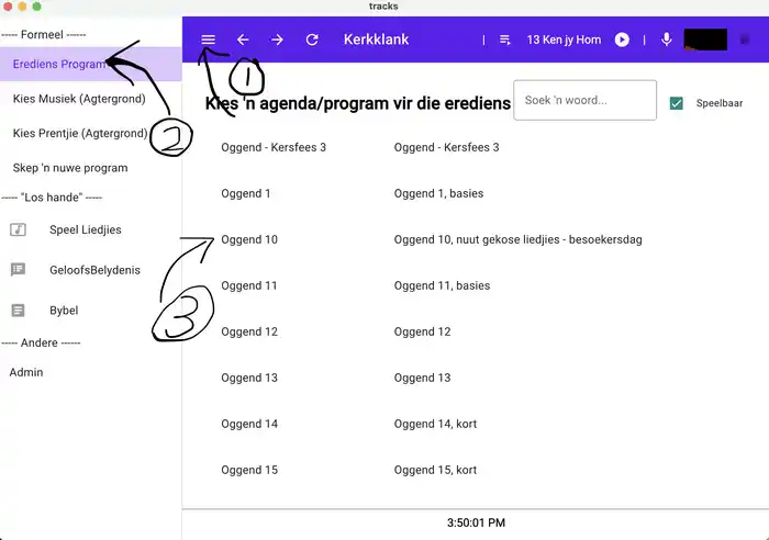 Klik op “Skep ’n nuwe program” ie erediens program om in die toekoms te kan speel