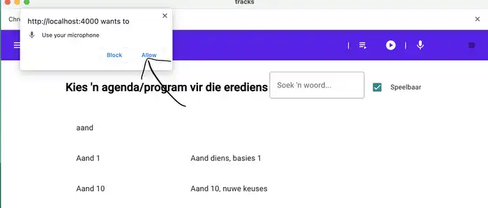 Dit is belangrik om toegang tot die gebruik van die mikrofoon toe te laat